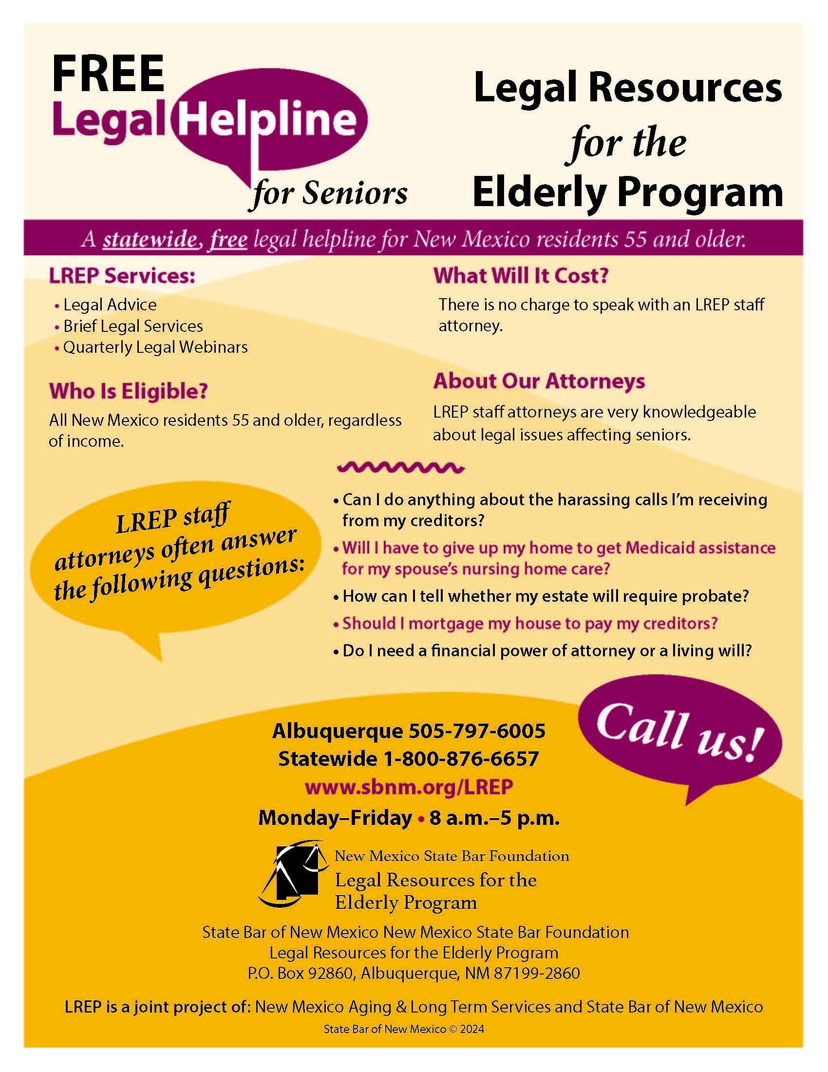 MMH and LREP work with New Mexico Legal Aid’s Volunteer Attorney Pool to provide services to low-income residents of our state. If you sign up for the MMH/LREP volunteer attorney pool, you are also entered into the NMLA VAP. If you do not want to be on the NMLA VAP, simply let staff of MMH or LREP know when you sign up.
